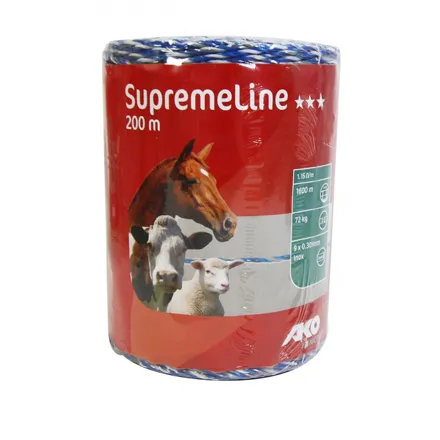 The AKO SupremeLine Polytwine in blue and white is the ideal fencing wire guaranteeing optimum conductivity designed with 3 stainless steel conductors, each 0.3mm diameter. Thanks to wire grouping, the fence voltage can be kept at a constant level with the Supremeline Polytwine with its two linked wires respectively. With a breaking strength of 72kg, the AKO SupremeLine Polytwine has being designed with longevity in mind!