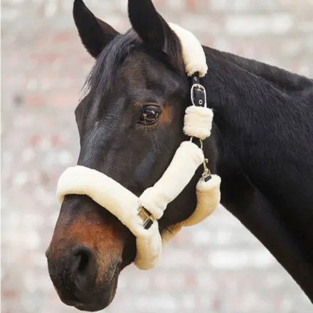 The Cozy Halter - Cream is a premium belt-style halter fully covered with soft synthetic fur for maximum comfort. The Cozy Halter - Cream is specially designed to reduce pressure and improve comfort for sensitive horses.