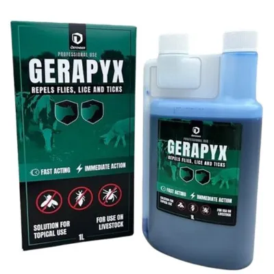 The Defender Gerapyx 1 Ltr is a fast-acting topical pour-on solution designed to repel and control flies, lice, and ticks on livestock. Ideal for use on cattle and sheep, it provides immediate protection against common external parasites, helping to improve animal comfort and overall wellbeing.