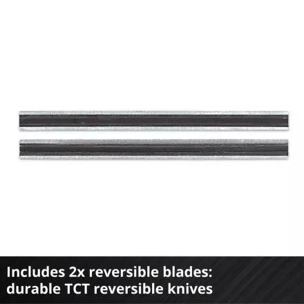 As part of the Power X-Change family, the Einhell 18V Professional Cordless Planer (Body only) is compatible with all Power X-Change batteries (2.5Ah or higher recommended). Features include two-sided selectable chip ejection, easy visual chip depth adjustment, automatic parking shoe, rip fence for straight planing, rebate depth stop, extraction adapter for wet/dry vacuum cleaners, ergonomic Softgrip handle, and includes 2x durable TCT reversible planer blades.