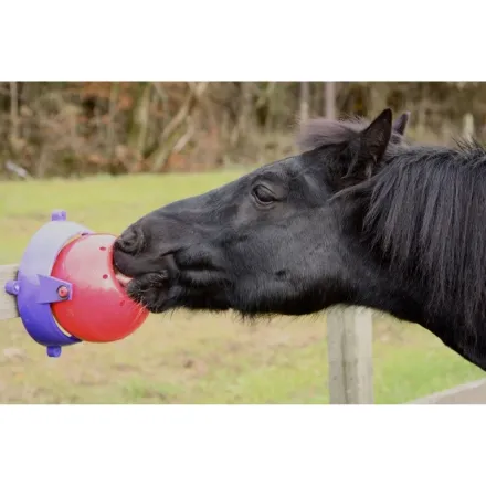 The Likit Tongue Twister is designed to fix securely to the stable wall, making it a practical choice for horses that prefer a gentler challenge.