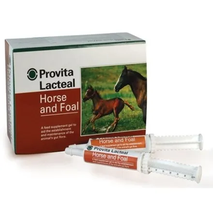 The Provita Lacteal Horse & Foal 35g Syringe supplies a source of EU approved probiotic bacteria designed to stabilise the intestinal microflora in horses and foals. The lactic acid producing strains colonise the gut and maintain a healthy gut environment, supporting optimal digestive health and nutrient absorption.