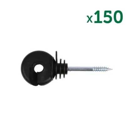 The Pack of 150 Ring Insulators is designed to securely attach electric fence wire to timber posts, with included drill accessory for easy installation.
