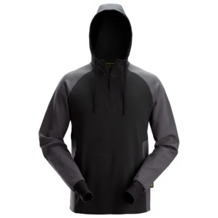 Features of the Snickers 2842 Two-Coloured Half-Zip Hoodie Black / Steel Grey