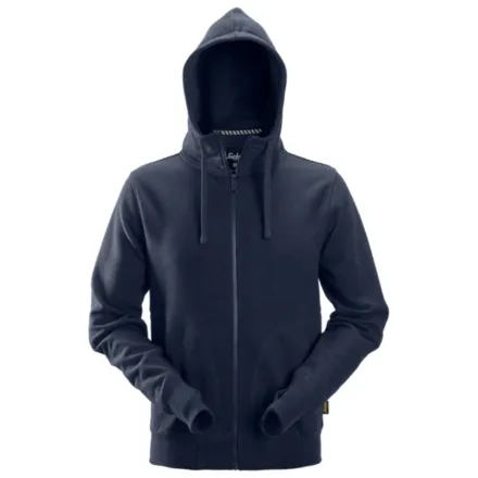 The Snickers 2890 Hoodie Full Zip Navy is a soft and casual hoodie that offers warmth and comfort during everyday use, built for most types of work. This warm and versatile full-zip hoodie is ideal for everyday use and most types of work all-year round. Made from a thick cotton-polyester blend with a brushed inside that provides durability, warmth, and comfort, the Snickers 2890 Hoodie Full Zip Navy features a lined hoodie with drawcord, cuffs with thumbhole, concealed side zip pocket for cellphone and keys, and welt pockets for a clean look, making it perfect for workwear, casual wear, and company profiling.