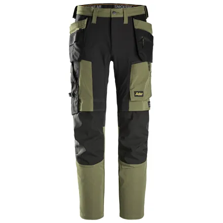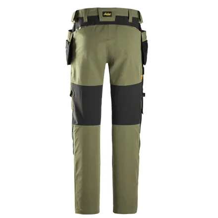 The Snickers 6218 AllroundWork Stretch Trousers in Khaki Green/Black deliver unbeatable comfort and mobility for demanding professionals. Crafted from soft 4-way stretch fabric, they allow full freedom of movement while maintaining a modern and slim fit. Designed to support carpenters, electricians, roofers and more, these trousers combine rugged durability with practical functionality for everyday work.