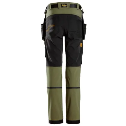 Features of the Snickers 7575 AllroundWork Junior 4-way Stretch Trousers Khaki Green / Black