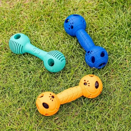 Measuring 6 x 6 x 17 cm, the Squeaky Ball Rubber GumBell is perfect for chewing, fetching, and interactive play. Its tough construction ensures long-lasting use, making it ideal for energetic dogs that love to play and chew.