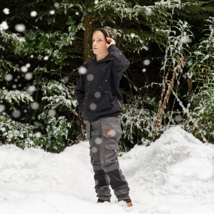 The Xpert Pro Junior Gift Bundle GGX is a winter-themed gift set aimed at kids, offering a practical yet fun assortment of clothing and accessories. This bundle typically includes a sleek black hoodie, grey/black work trousers, a beanie hat and gummy sweets.